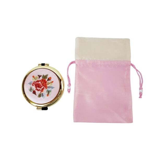韓国手刺繍手鏡 淡ピンク【全8色】
