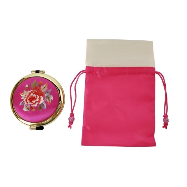 韓国手刺繍手鏡 マゼンタピンク【全8色】