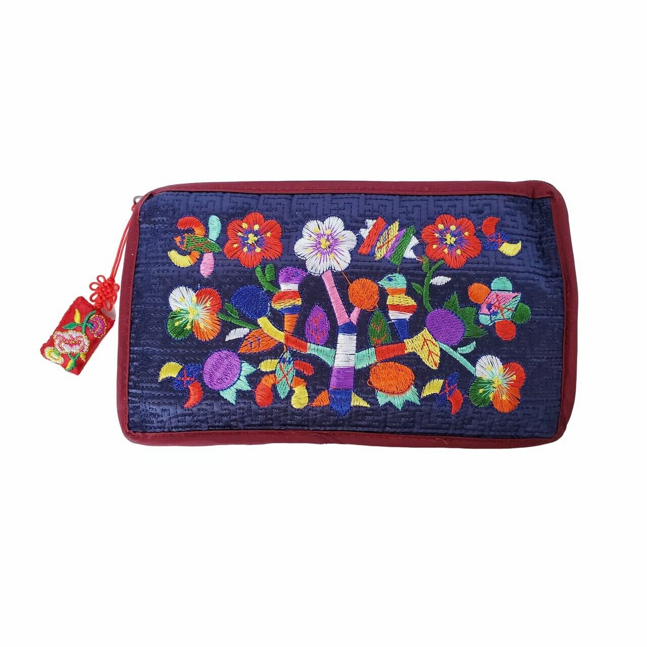 梅の花や鳥など、韓国らしいレトロな刺繍が施されたポーチです。