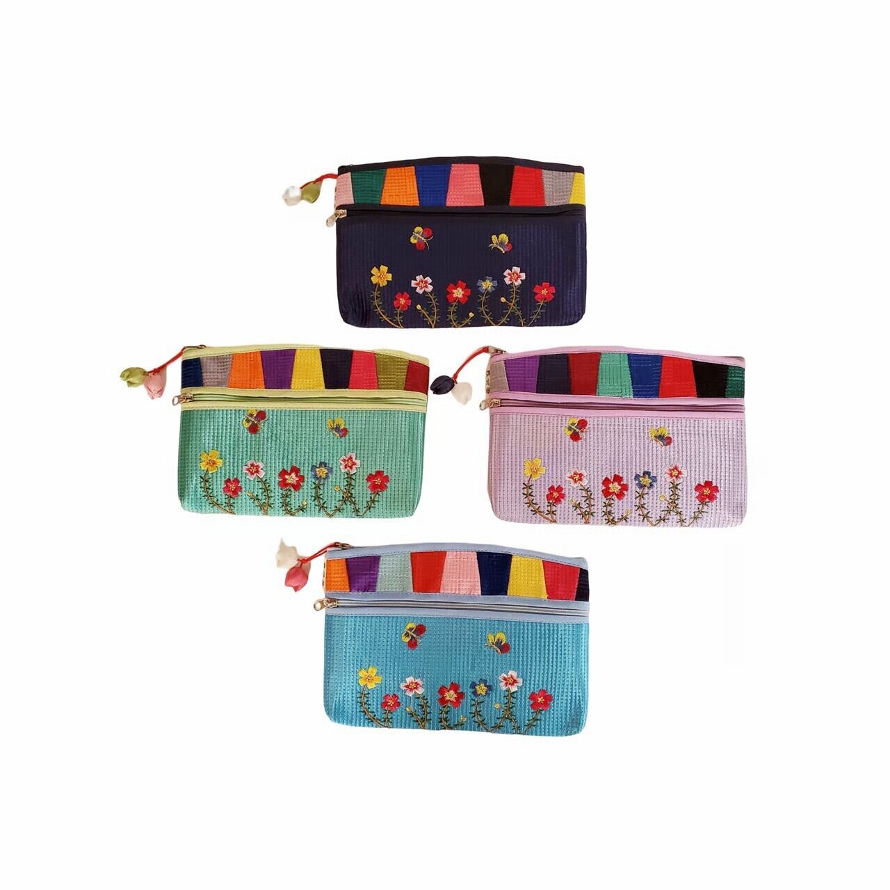 韓国ヌビ お花と蝶の刺繍ポーチ【全4色】