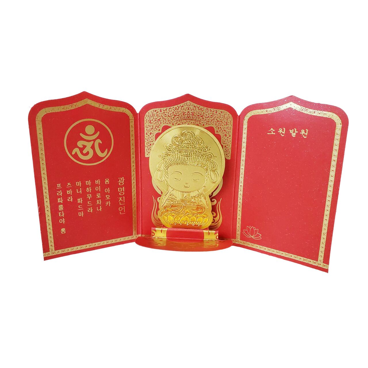 キラキラ輝く観音様のお守りカードです。